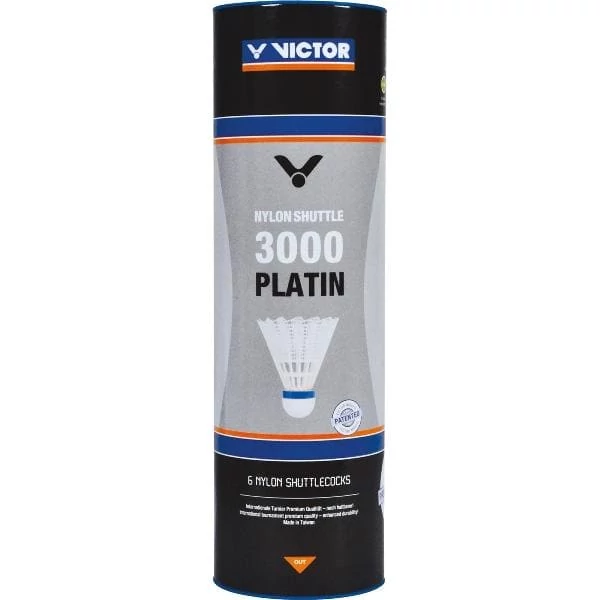A Victor 3000 Platin műanyag tollaslabda prémium minőségű edzőlabdák csomagja. A műanyag szoknya és a természetes portugál parafa fej kombinációja stabil és természetes repülési ívet biztosít, amely megközelíti a tollasgyapot labdák teljesítményét.